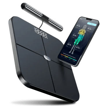 Traditional smart scales use only four electrodes (both feet). They only send signals through the lower body, which means they guess upper-body composition using algorithms.